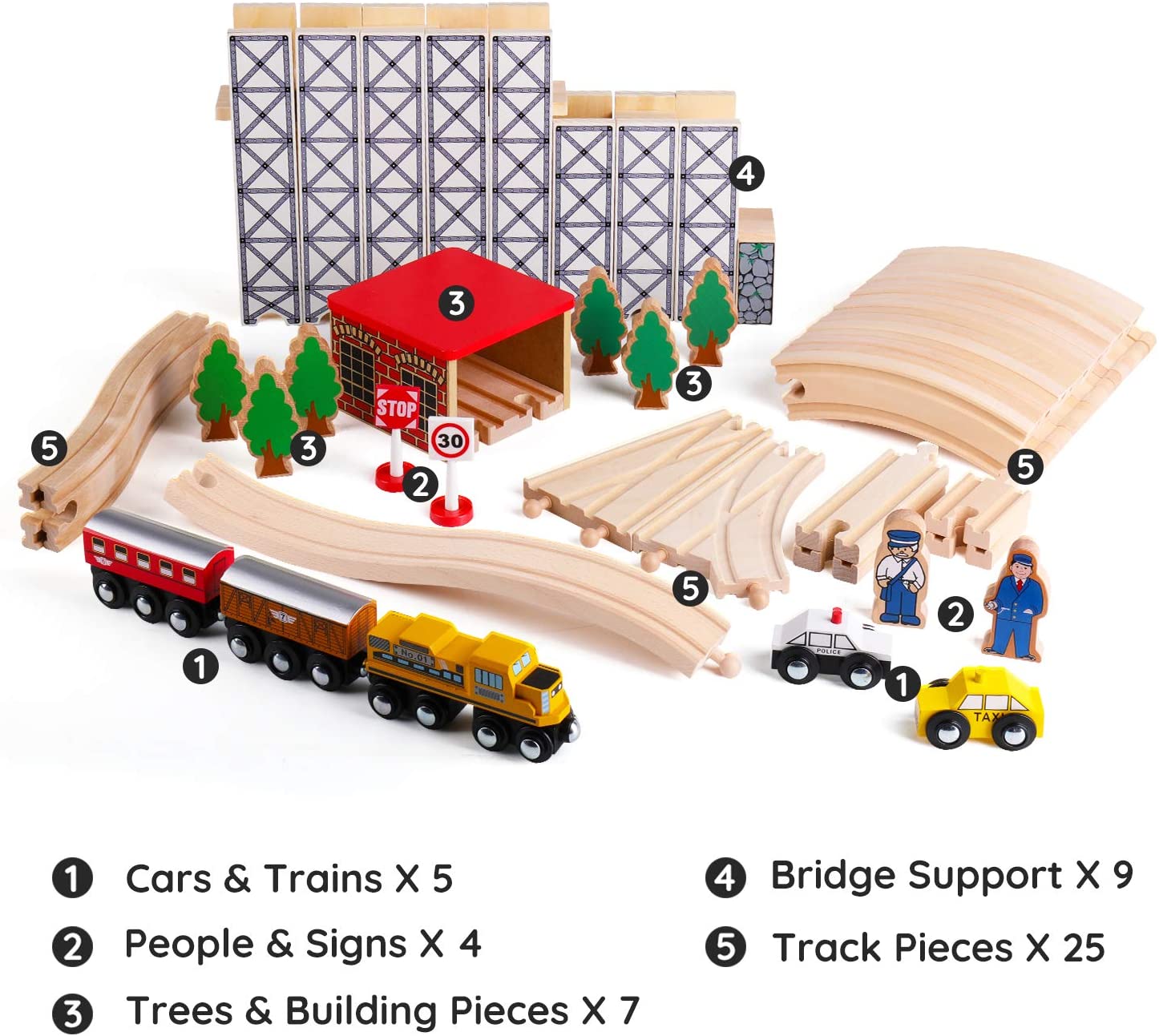 Sainsmart Jr Wooden Train Set Toy With Rail High Level Part 50 Pcs Flyover Overpass Wooden Train Playset With 5 Magnetic Train Cars For Toddlers Walmart Com